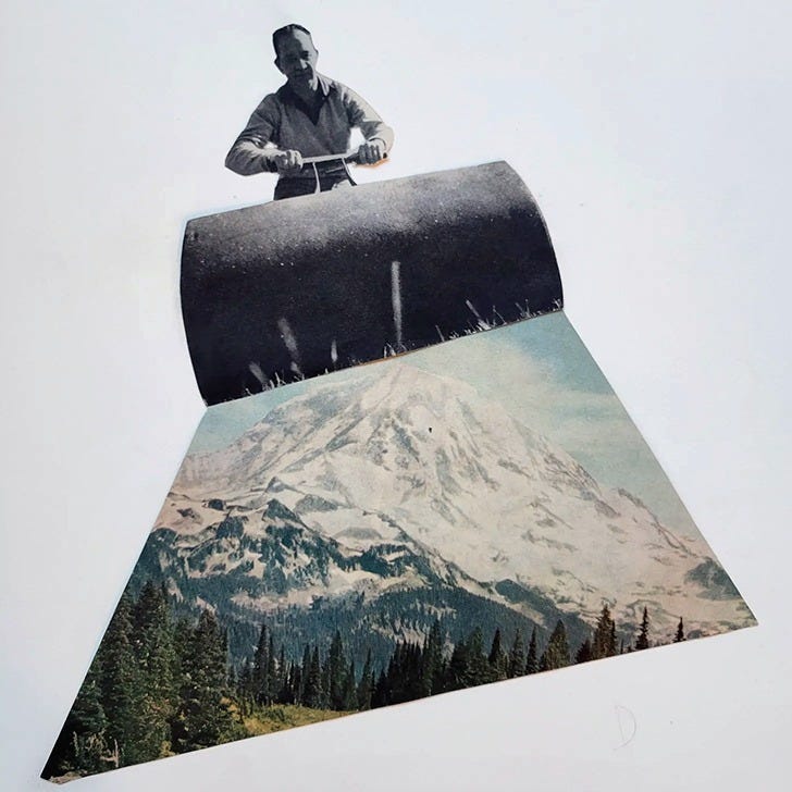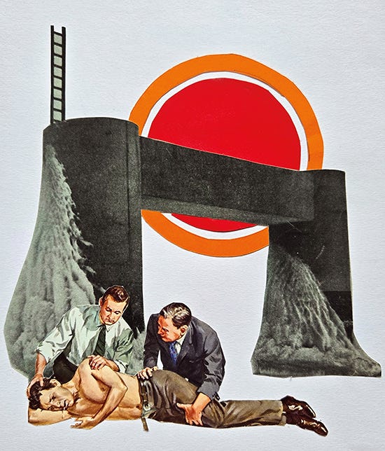 (Author’s Note: Last month, Josh Glenn at HiLoBrow invited me to curate a series of my collages, with commentary. I’d been wanting to write about how I accidentally became a collagist, so I was grateful for the opportunity. The following is a version of that series.)